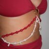 Um modelo que une delicadeza e personalidade. O top de amarração fina valoriza o colo e ganha destaque com o body chain em pedrarias acoplado à peça, pensado para compor produções de Carnaval cheias de atitude, que é removível, permitindo que o biquíni seja usado normalmente em propostas mais versáteis. As alças com amarração nas costas garantem ajuste perfeito ao corpo, conforto e sustentação.